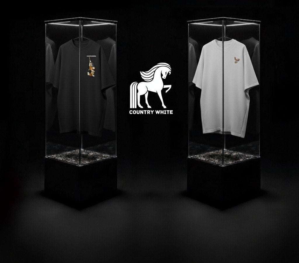Cartoon Embroidery Oversized T-Shirt (Black, Country White Edition)