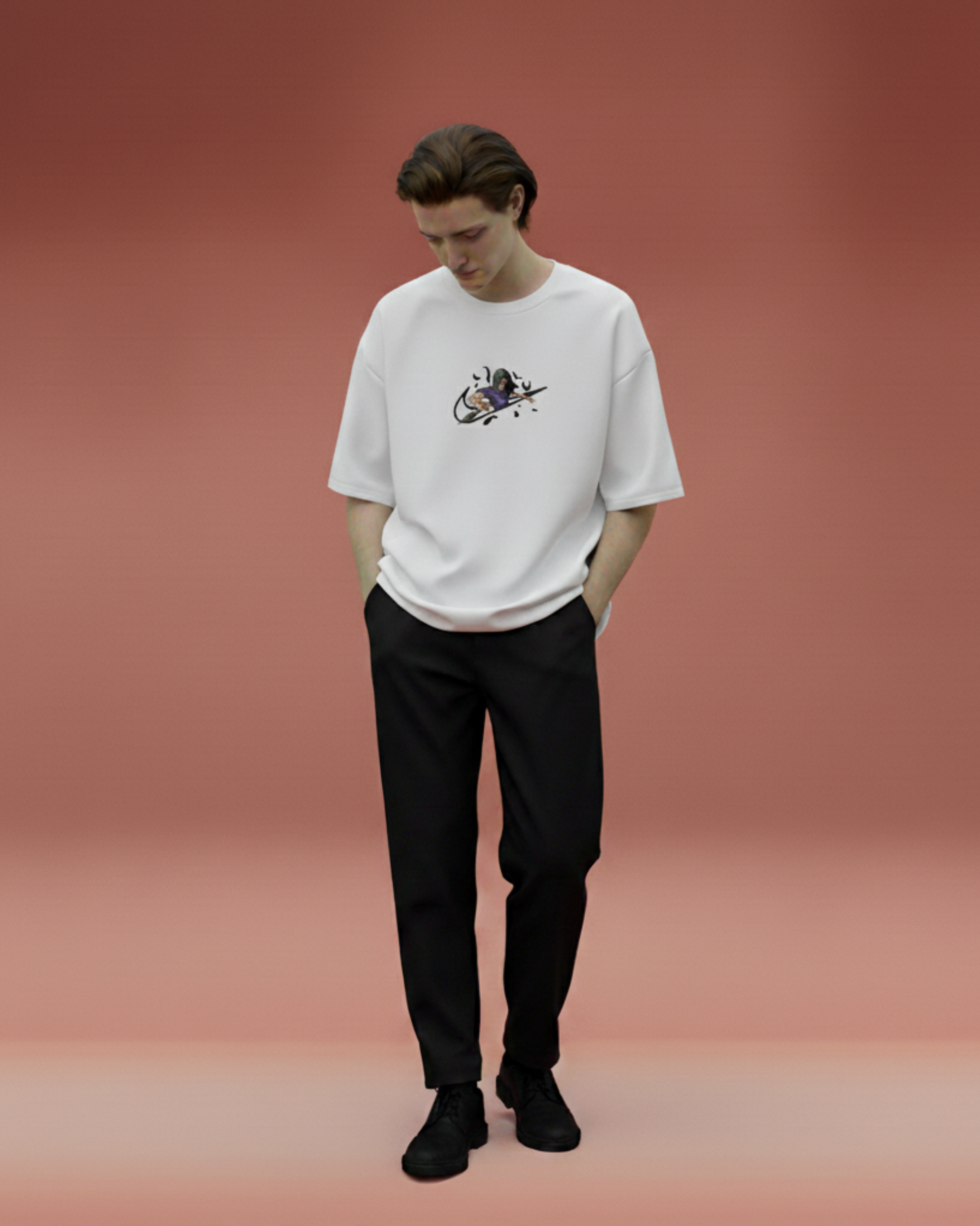 Itachi Crow Embroidery Oversized T-Shirt (White Edition)